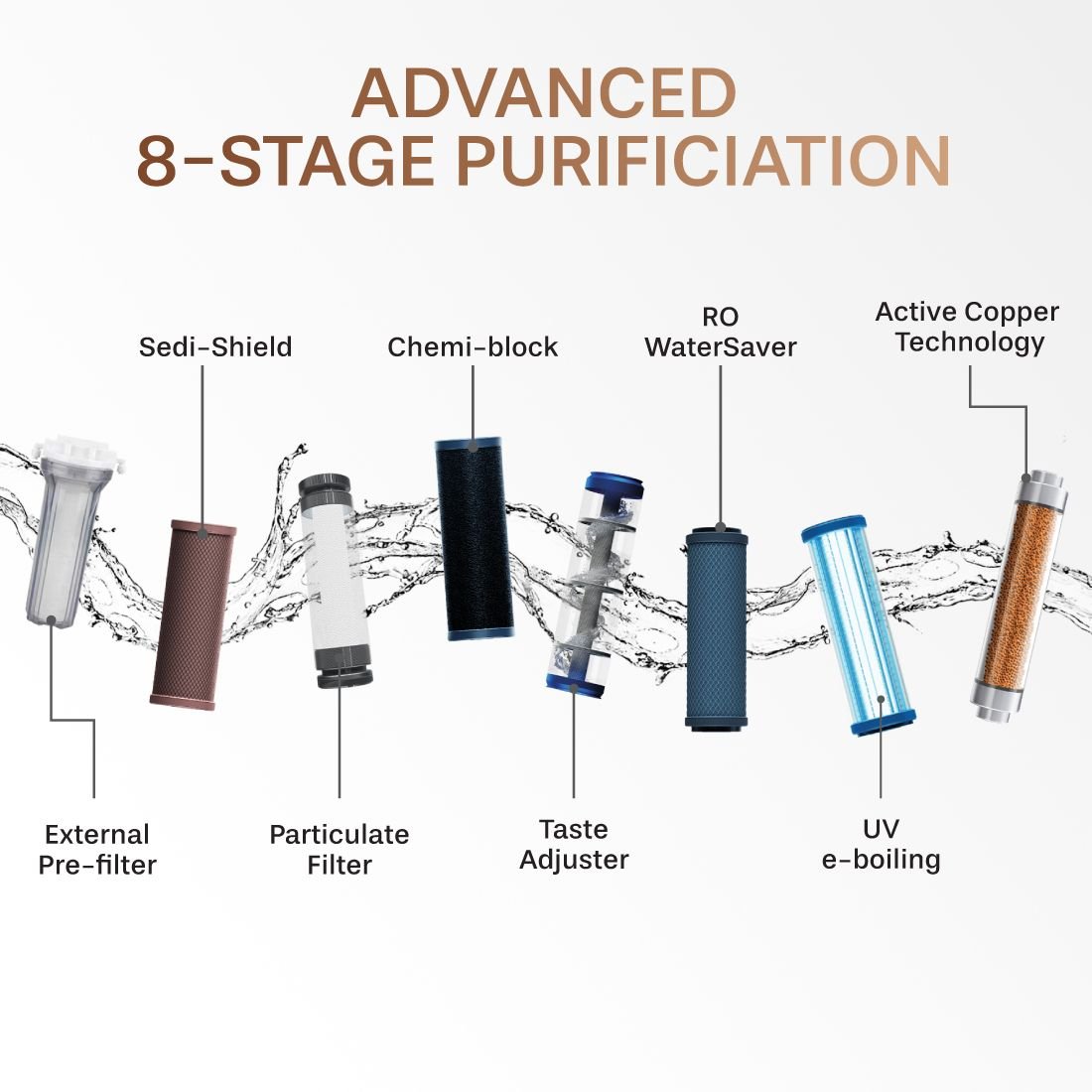 Eureka Forbes Aquaguard Enrich Enhance Copper RO+UV 2X Water Purifier, 2 Year Filter Life, With Mega Sediment Filter, Suitable for Borewell, Tanker, Municipal All Water Sources, Upto 40% Water Savings, Smart LED Indication, 8-Stage Purification, Large 07L Storage, Black, India’s No.1 Purifier.