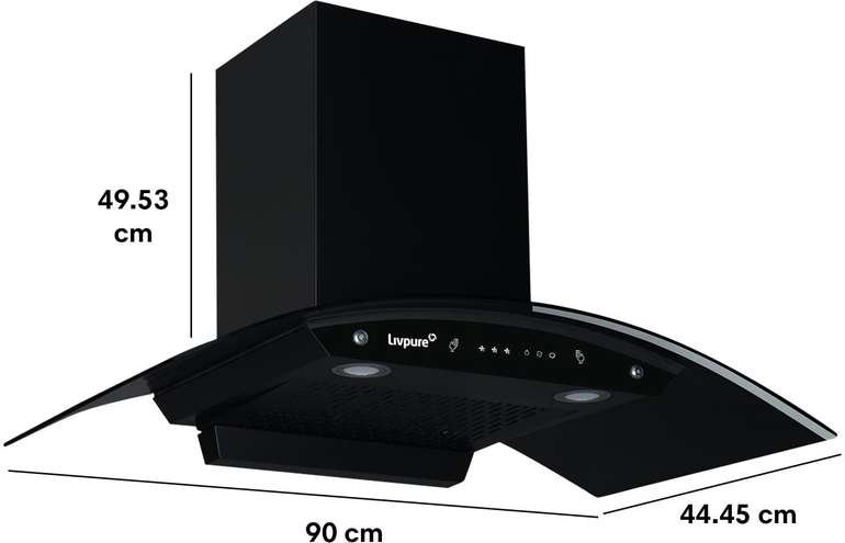 Livpure Swirl-90 Auto Clean Wall Mounted Chimney (Powerful Suction-1400 m3/h Black)